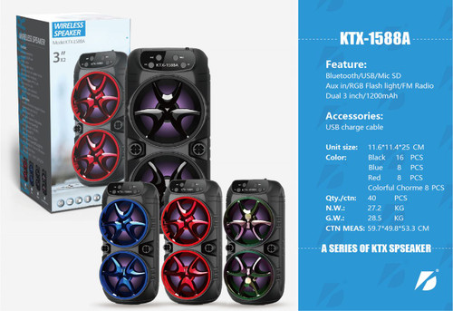 اسپیکر بلوتوثی وایرلس 1588A رنگبندی مشکی ، قرمز ، آبی