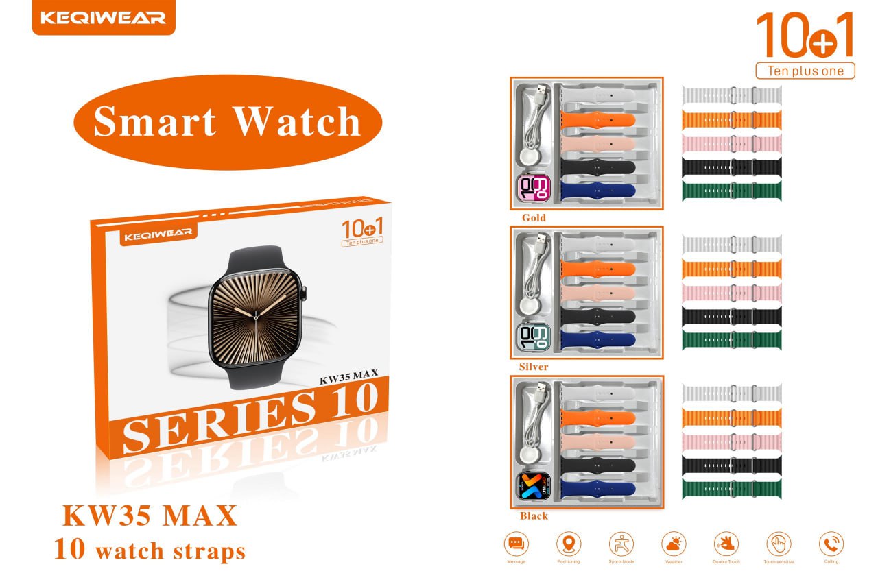 ساعت هوشمند طرح اپل واچ مدل KW35 MAX پک اقتصادی ۱۰ بند