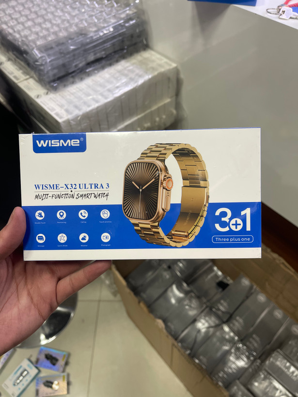 ساعت هوشمند ویسمی مدل WISME-X32 ULTRA3 بدنه طلائی بهمراه ۳ بند