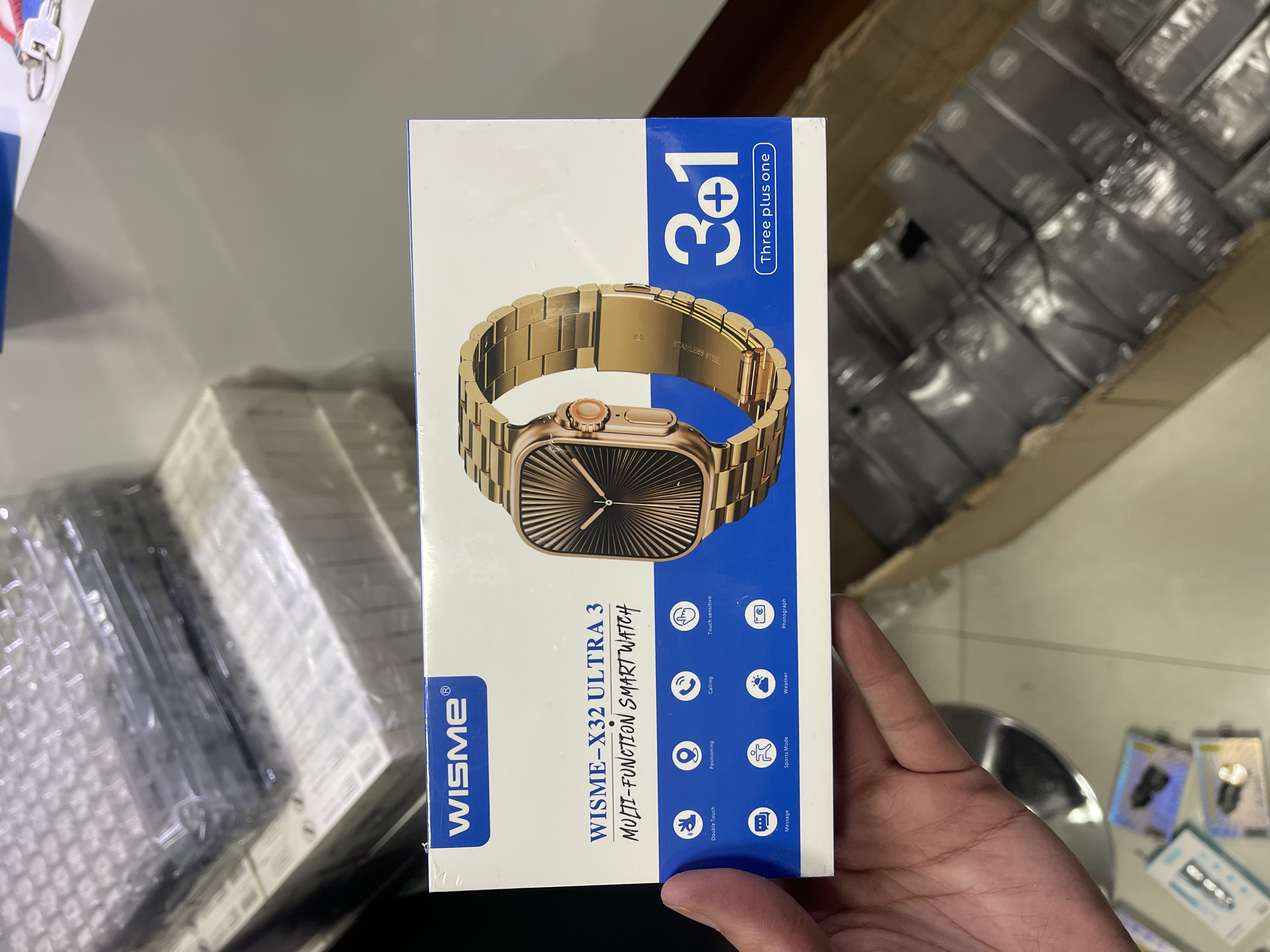 ساعت هوشمند ویسمی مدل WISME-X32 ULTRA3 بدنه طلائی بهمراه ۳ بند