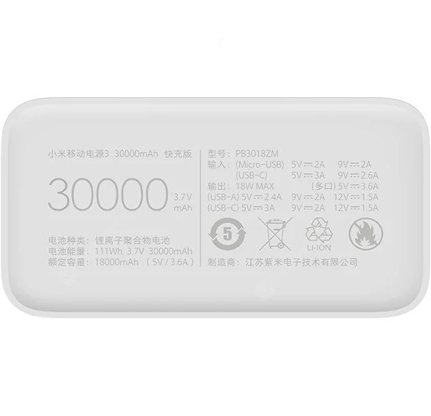 پاوربانک شیائومی مدل Mi PB3018ZM ظرفیت 30000 میلی آمپر ساعت اصل