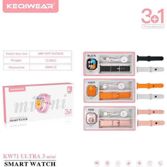 ساعت هوشمند زنانه KW71 Ultra 3 Mini با نمایشگر AMOLED و بند سیلیکونی